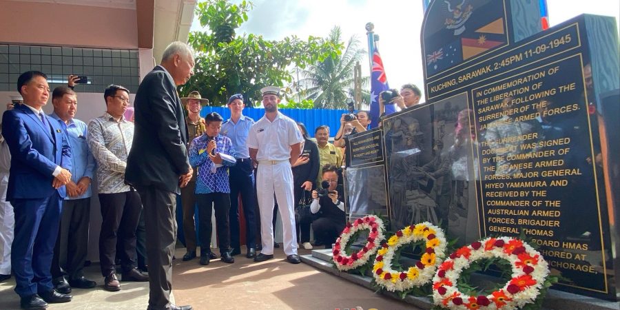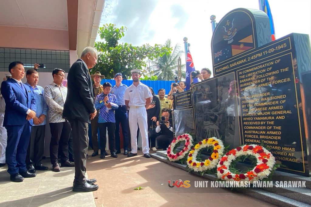 他说,这座纪念碑象征着对澳洲、英国、纽西兰和加拿大的盟军,以及在三年多的日治时期饱受苦难的砂拉越当地战士和人民的敬意。