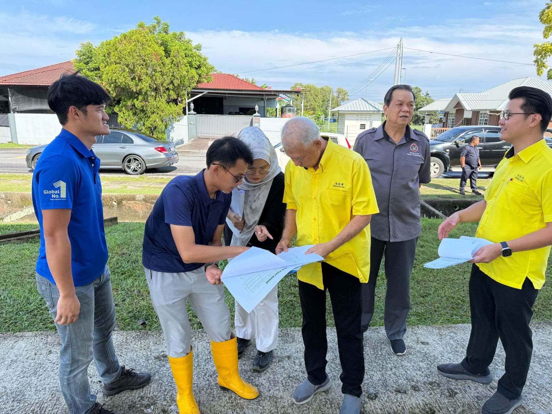 砂旅游部副部长兼卑尔骚区州议员拿督陈超耀今日巡视位于Jalan Aru的篮球场提升工程,了解工程进展及施工质量。