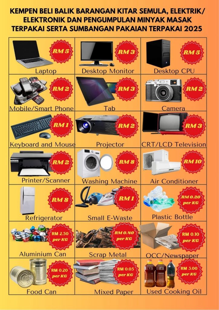 Padawan Municipal Council (MPP) will also be organising the Buy Back Campaign for Recycled Items, Electrical and Electronic Waste (B.E.E.), Collection of Used Cooking Oil, and Donation of Used Clothing at the parking area near JPJ Batu 11, Jalan Kuching-Serian, on November 8 from 8 a.m. to 12 p.m.