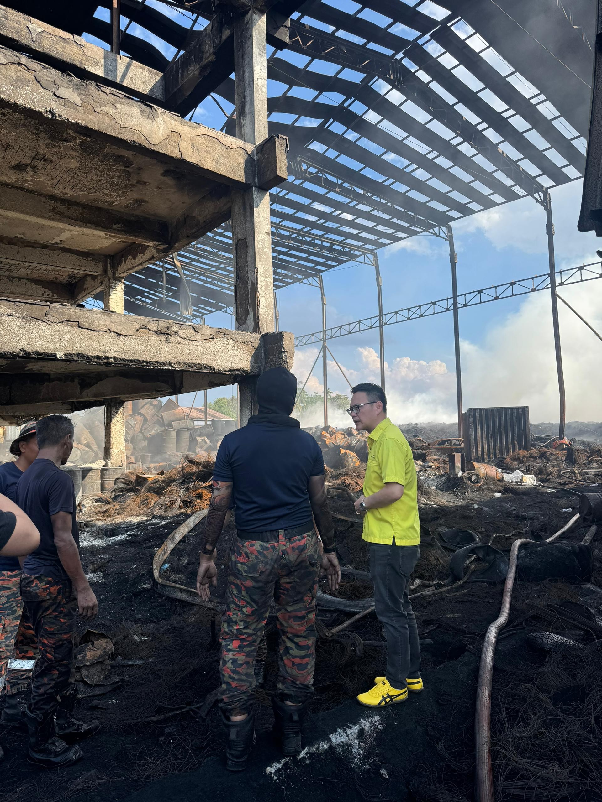 He expressed his appreciation to Dato Amos Tay and his team for their continuous support, including arranging meals and drinks for firefighters who had been battling the blaze tirelessly for four days and three nights.