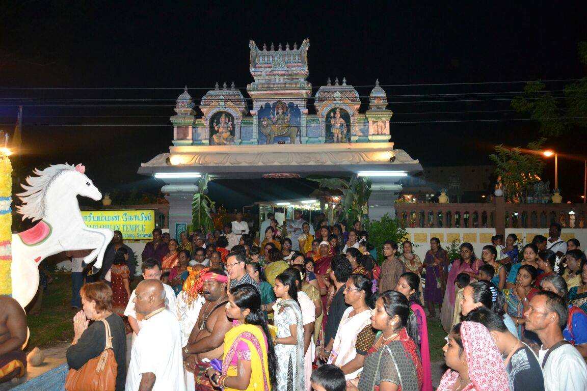砂人联党主席拿督沈桂贤上议员于昨晚受邀出席位于大石路的Sri Maha Mariamman兴都庙所举办的Navaratri庆典。