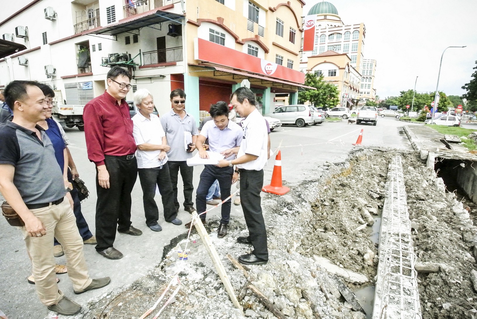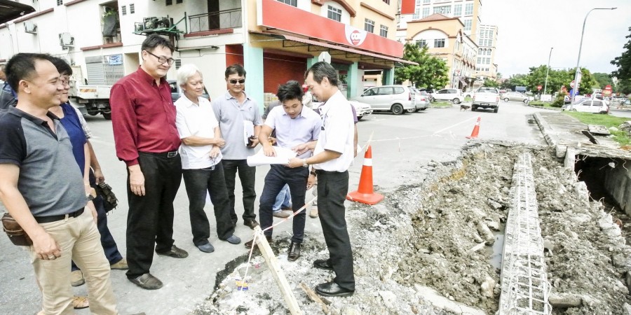 收到投诉后,叶耀星偕同巴达旺市议会工程师 Encik Mohd Hazwan Othman 前往现场实地考察以寻求解决方案。